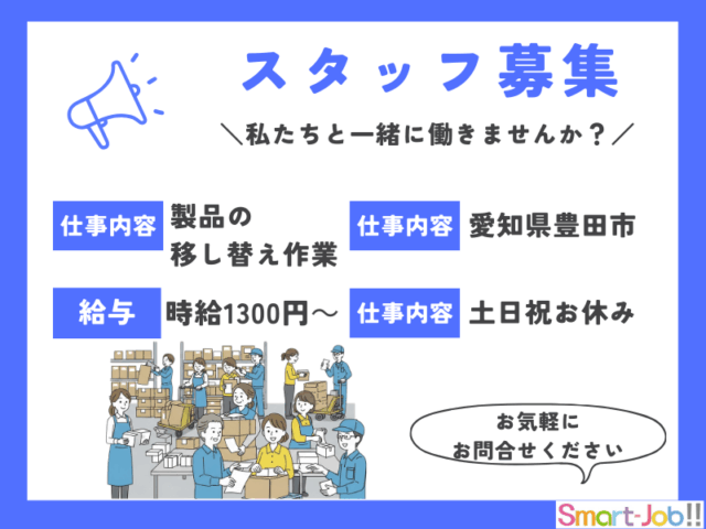 勤務地★豊田市和会町(変更の範囲)会社の定める派遣先