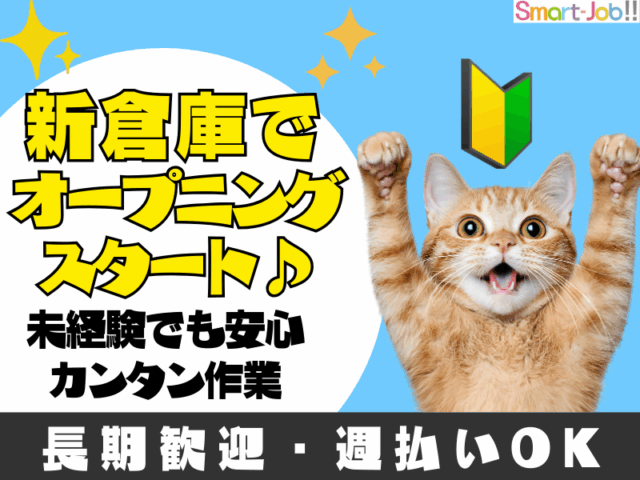 【日勤専属】ラクチン作業ですぐ慣れる♪新倉庫でオープニングスタッフ No.05-104-JOB2